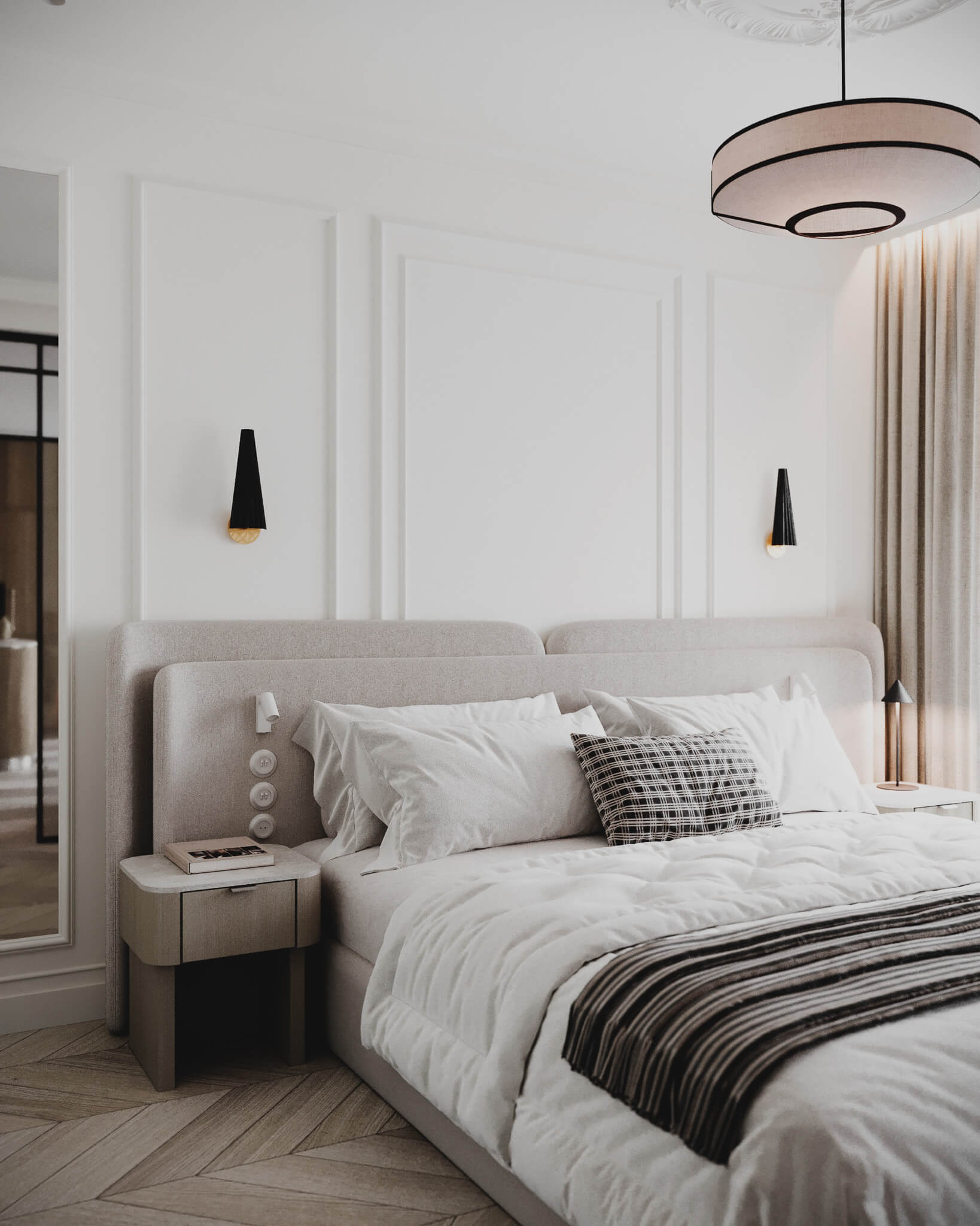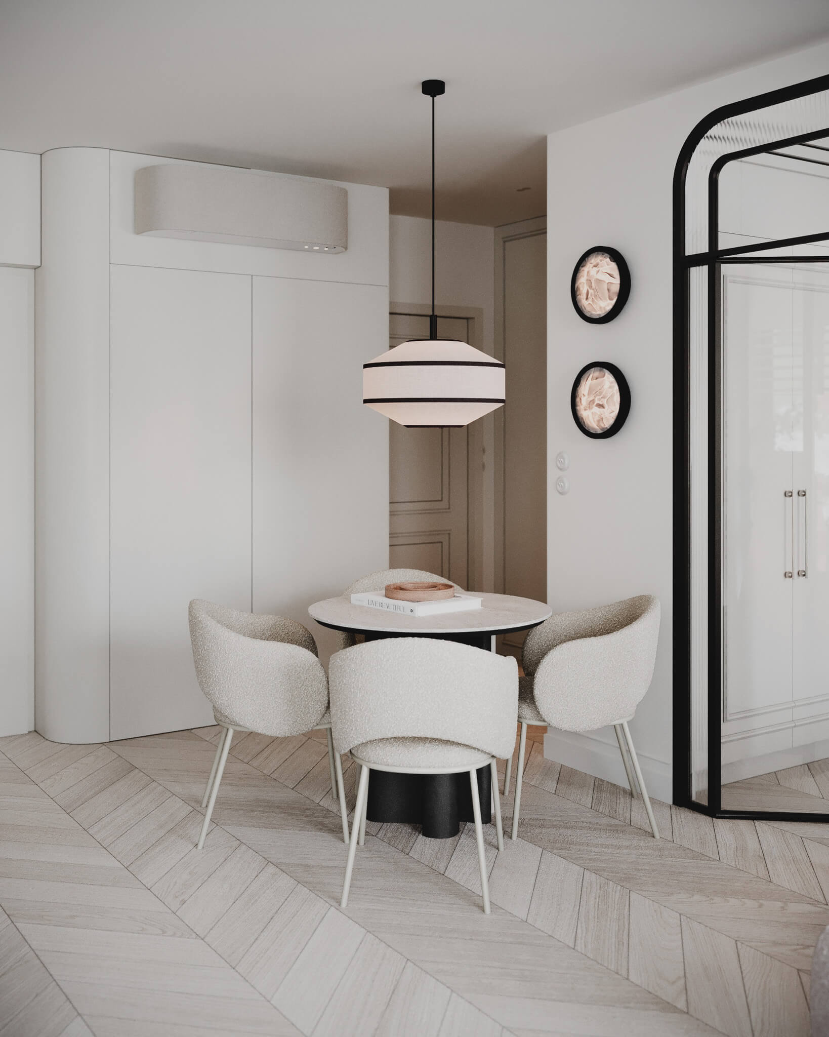 W tym projekcie chcieliśmy uchwycić coś ulotnego – atmosferę paryskiego apartamentu, przeniesioną w ramy nowoczesnej funkcjonalności. To "Paryż w pigułce": przestrzeń, która łączy w sobie historyczny sznyt z lekkością i bezpretensjonalnym luzem.
